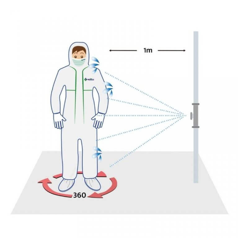 If the test subject is not able to perform the test due to the hindrance of the suit or if the test results in substantial damage to the suit, the suit will be considered to have failed. The test method of EN 468 shall be modified as follows for low-level spray testing conditions: